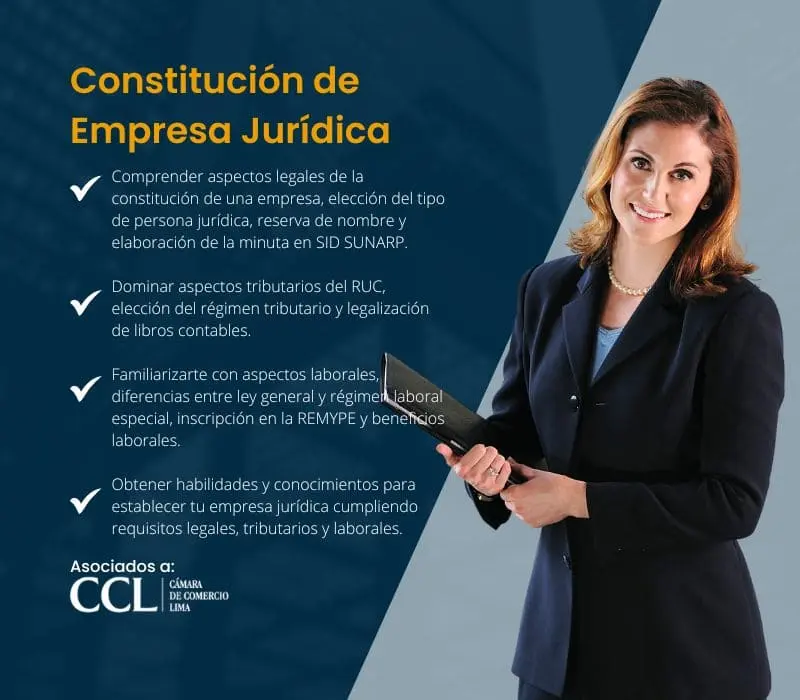 ✔ Dominar las normativas legales y los procedimientos para la constitución de empresas jurídicas, incluyendo la elección del tipo de empresa, la reserva de nombre y la elaboración de minutas.